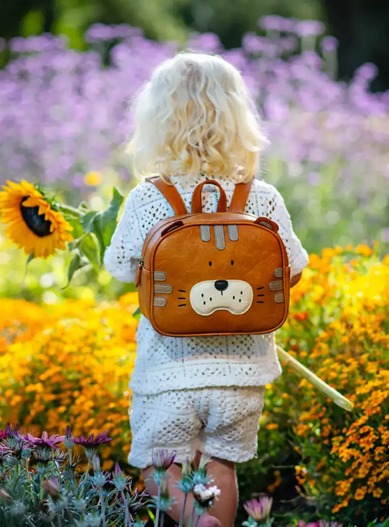 Slitstark ryggsäck i veganskt läder med reglerbara axelremmar som är långa nog att passa både små och stora ryggar. Denna rara ryggsäck utformad som ett bi, rymmer alltifrån matsäck och planteringsprylar till skolböcker. Tigern Tora är utrustad med fina detaljer i form av öron och morrhår. På insidan finns ett litet fack med blixtlås för särskilt värdefulla små skatter. Ryggsäcken är fri från PFAS och ett hållbart val för både små och stora äventyrare! Vill du lära känna Tora lite bättre? Skrolla ner för att läsa mer om henne och hitta fullständig produktinformation.